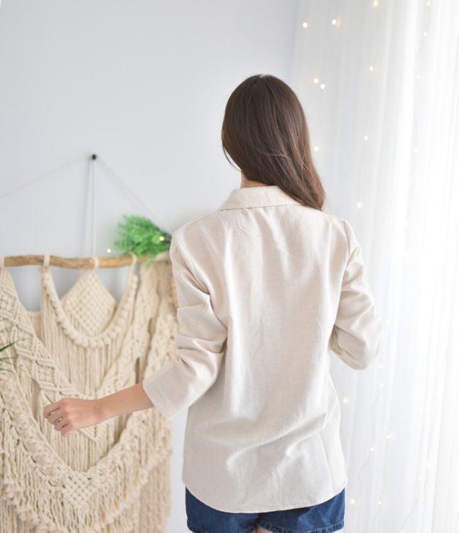 6013 Kolu Kıvırmalı Keten Gömlek