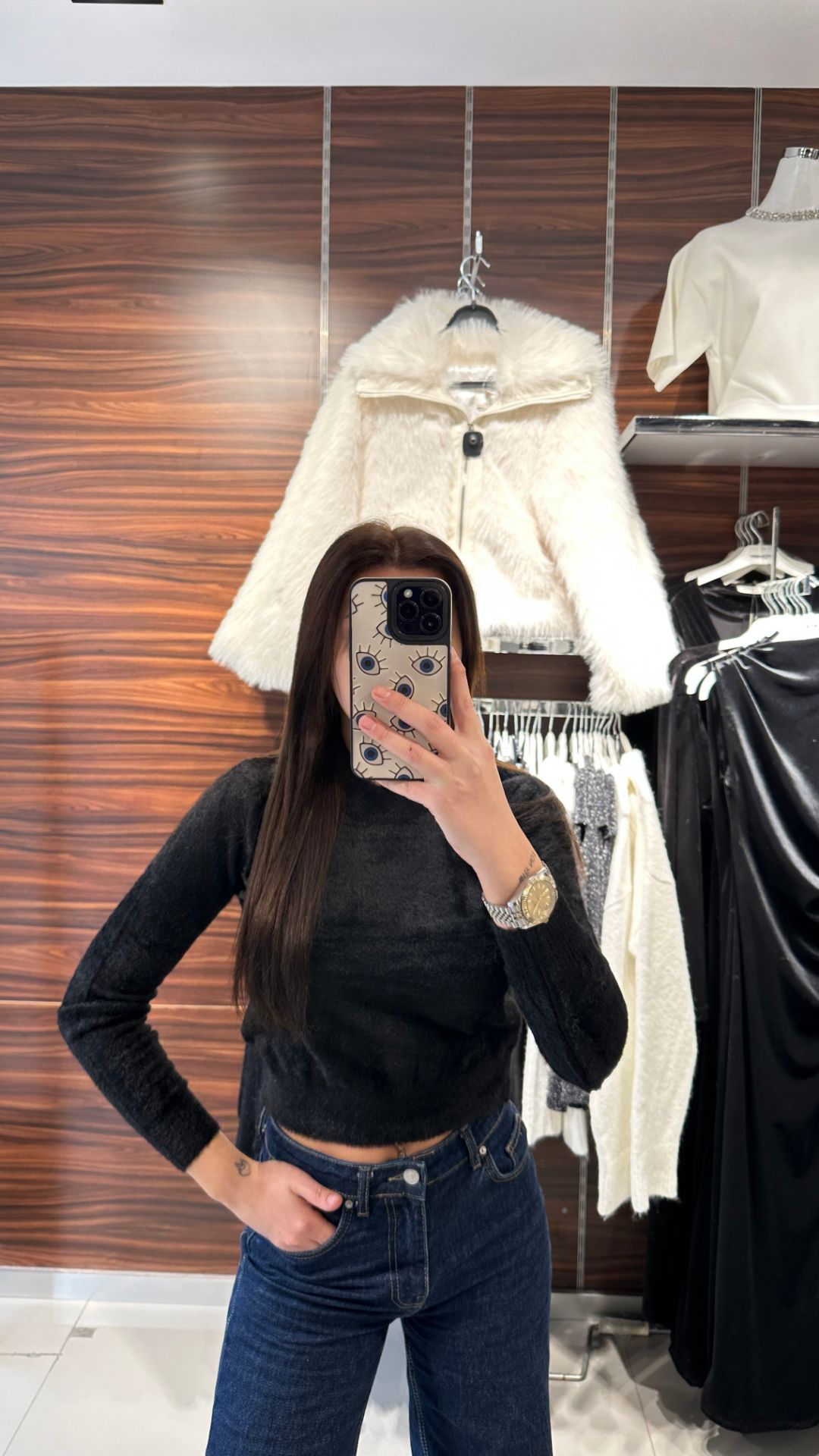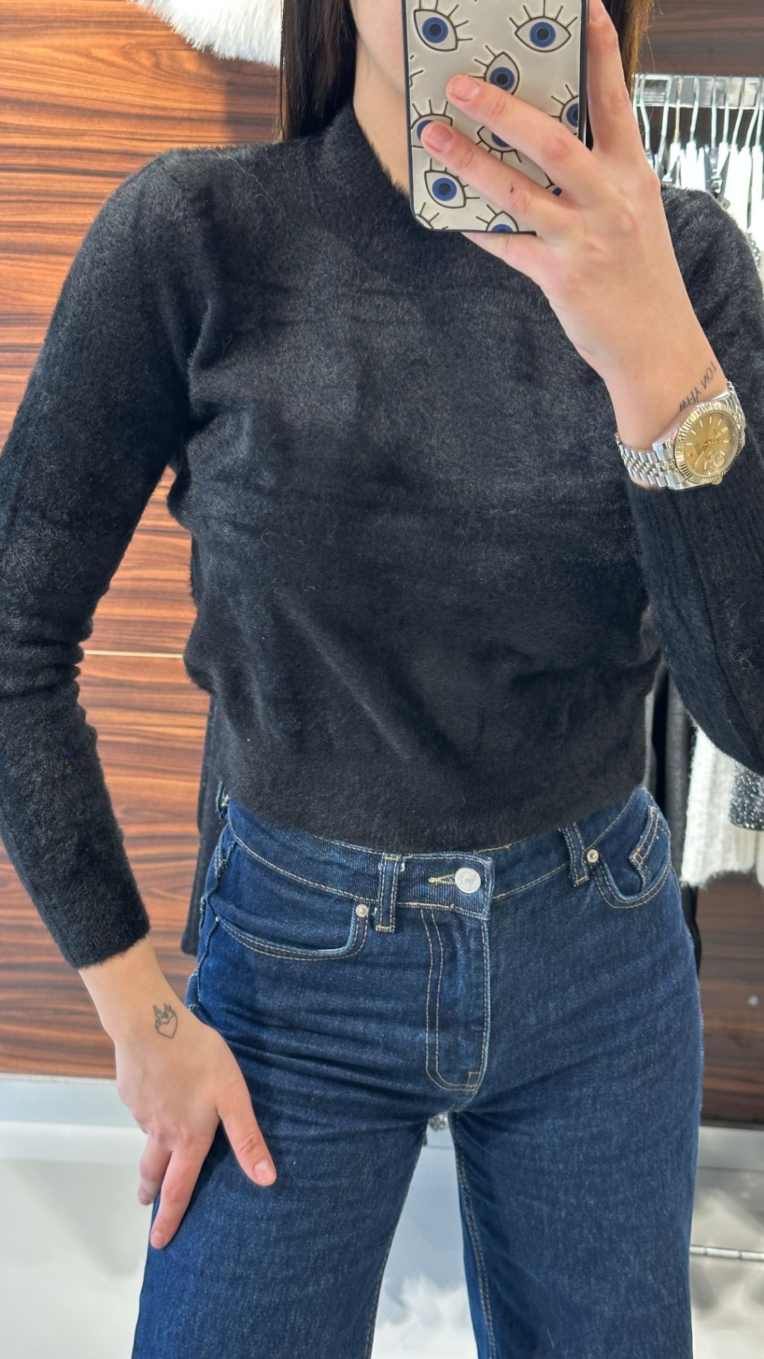 Bisiklet Yaka Sakal Kumaş Kısa Kazak-Siyah 5613
