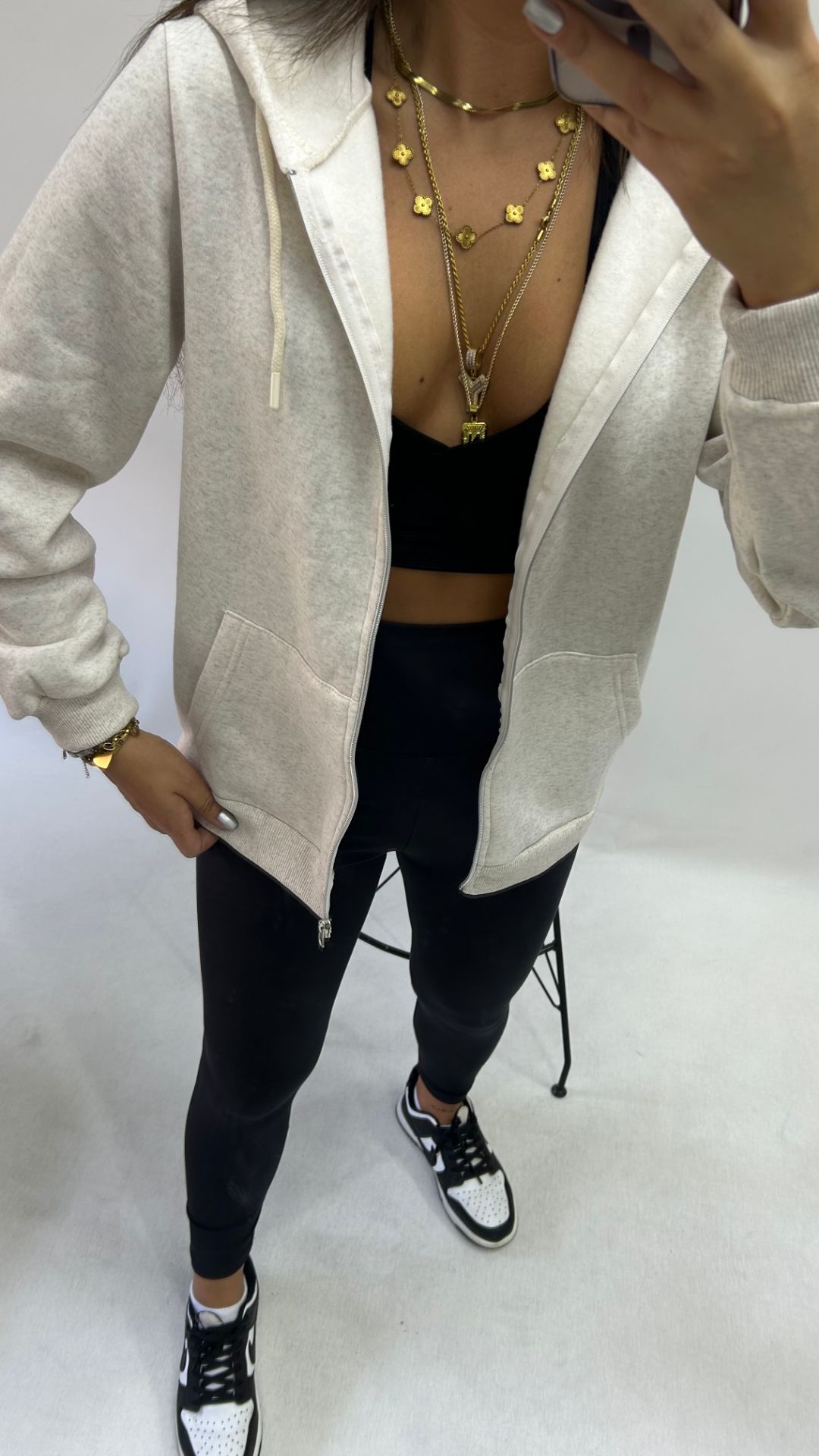 Kapüşonlu Fermuarlı Polar Bej Hırka W0009842