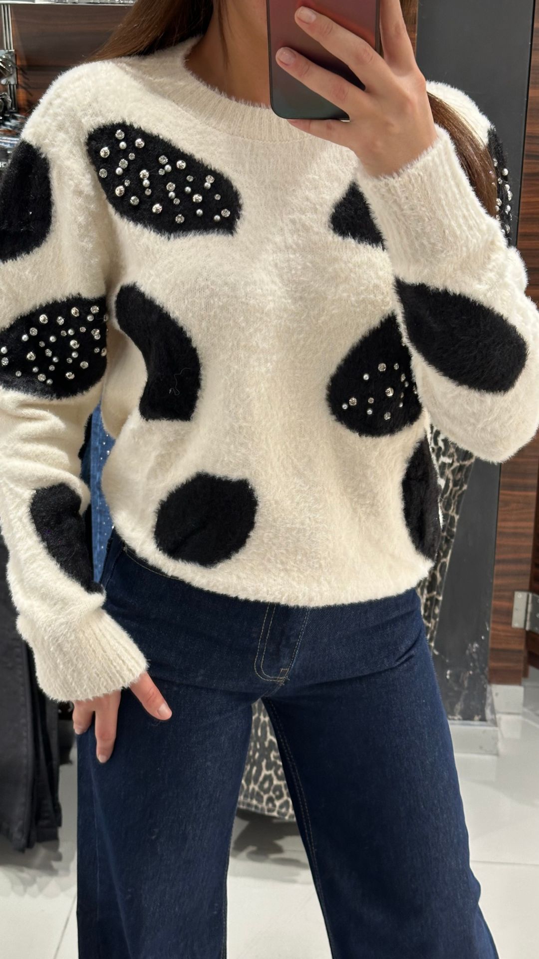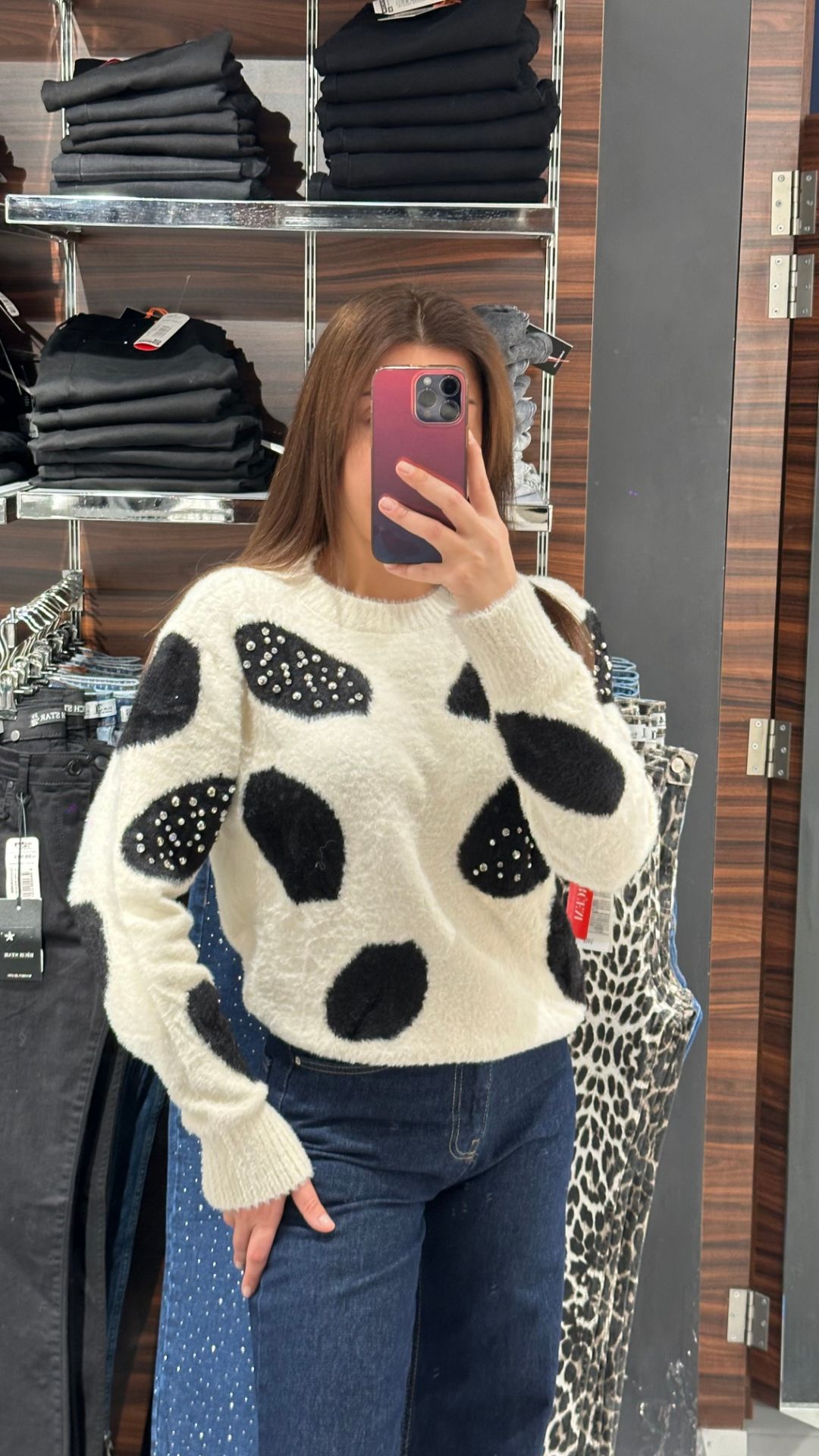 Taş Baskılı Sakallı Kazak-Krem 5149