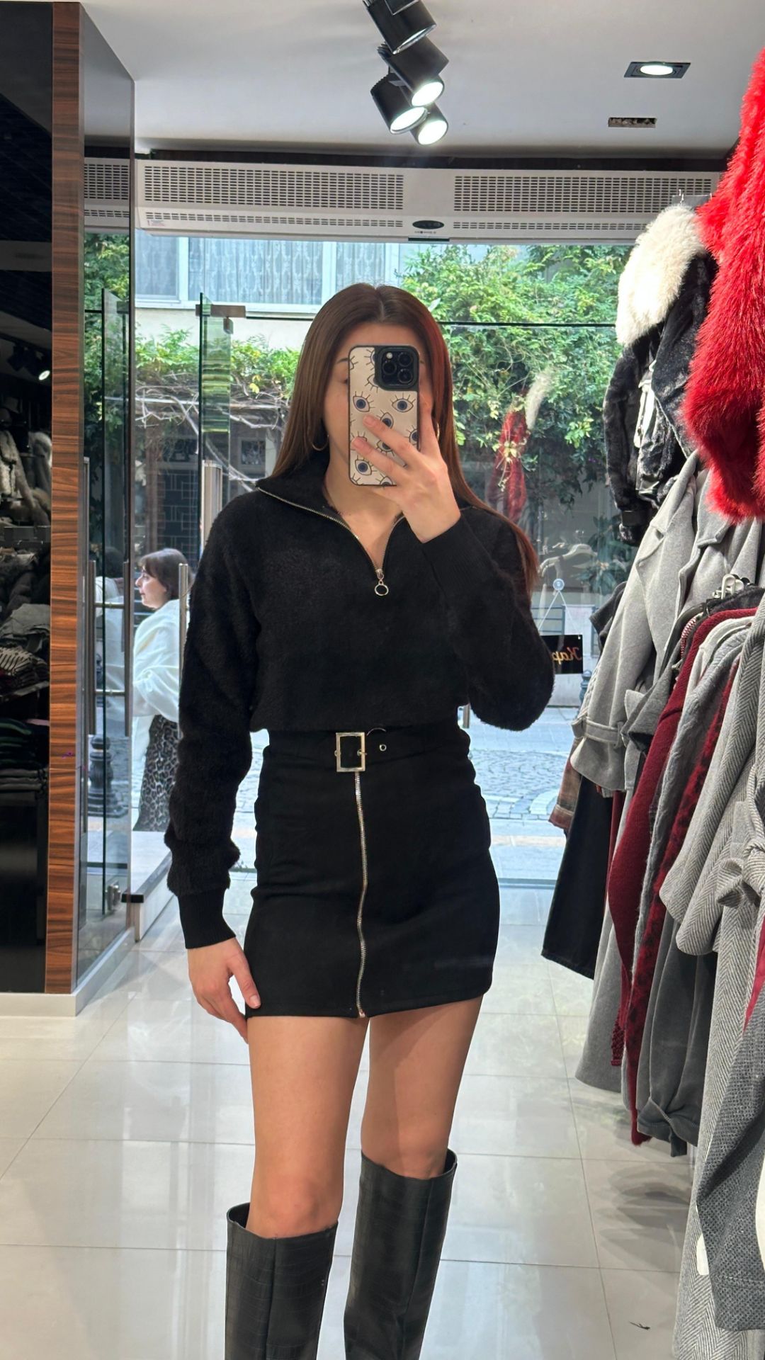 Yarım Fermuarlı Angora Kazak-Siyah 210